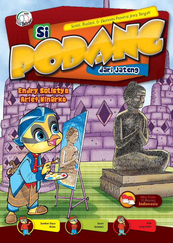 Teman-teman, sudah mengenal Provinsi Jawa Tengah? Ya, provinsi yang memiliki kekayaan dan sumber daya alam yang tersebar di 29 kabupaten dan 6 kota. Jawa Tengah memiliki berbagai macam tradisi dan sejarah yang perlu kita semua ketahui. Apa saja ya yang menarik di Jawa Tengah? Sabar... Si Podang dengan senang hati akan mengajak kalian menelusuri sejarah, mengenal tradisi, dan hal-hal yang berkaitan dengan Jawa Tengah. Si Podang akan menuntun kalian ke tempat-tempat bersejarah seperti Keraton Surakarta, Lawang Sewu, Museum Ronggowarsito, tempat-tempat wisata alam, dan tempat lain yang tak kalah serunya. Dengan mengenal berbagai tempat-tempat penting tersebut diharapkan kalian semakin mencintai keragaman budaya Indonesia. Ayo, baca terus buku Si Podang dari Jawa Tengah. Dapatkan informasi dan pengetahuan di dalamnya! Kalian pasti senang karena buku ini juga dilengkapi cerita legenda, permainan, juga keterampilan sains yang sayang untuk dilewatkan.